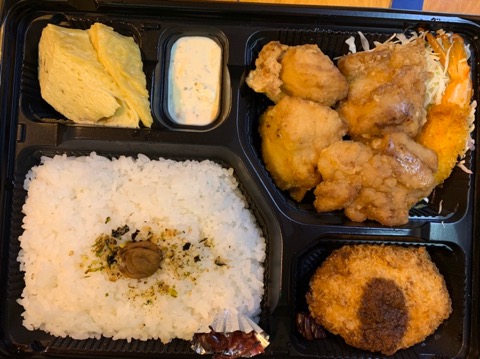 6種類のおかずと3種類のご飯。それぞれ少しずついろいろな種類が食べられてよい。