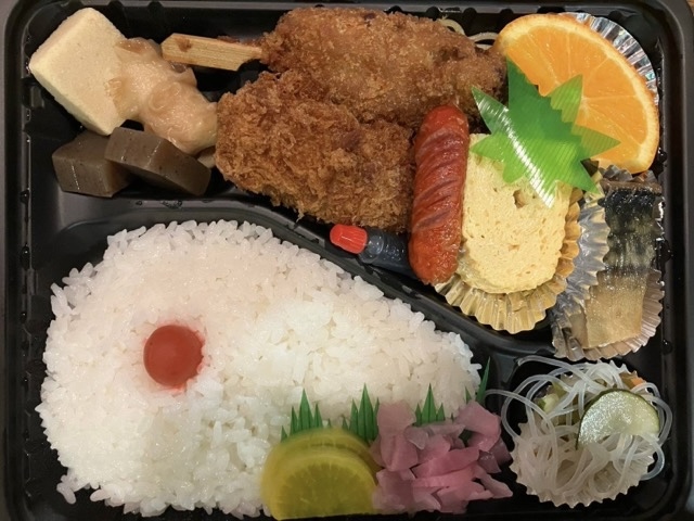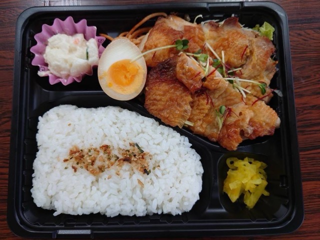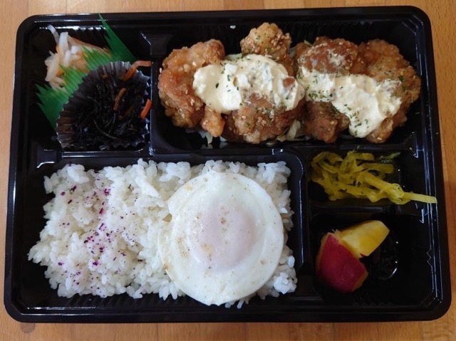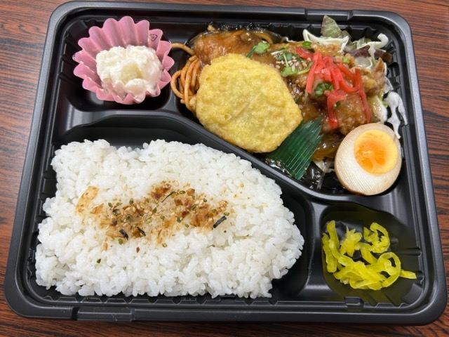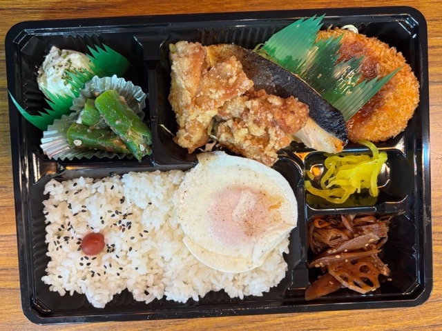ご飯には目玉焼きがのってたり、1つのお弁当におかずが豊富。