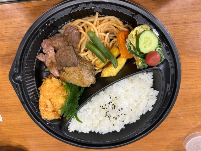今回はステーキとハンバーグとクリームコロッケ弁当を注文。