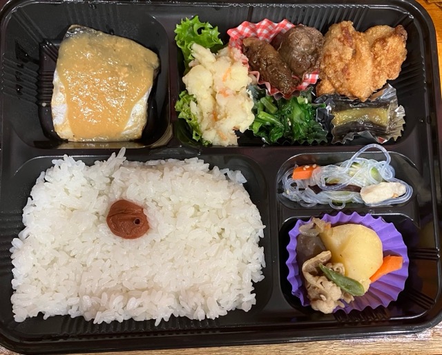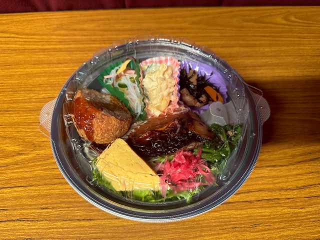 鯖の塩焼きがメインのものを選んでみた。塩がかなりしっかりときいた塩焼きだった。もう少し薄味でもわたしは好きだよ。鯖と同じくらいのボリュームでメンチカツも入っている。