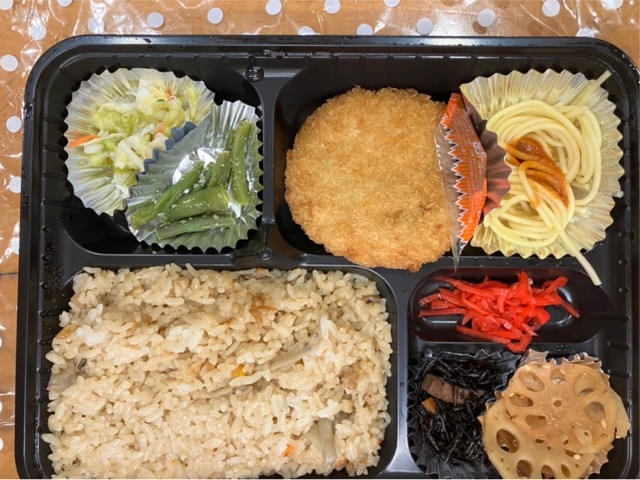 炊き込みご飯は味がしっかりついていたが量が多め。具材は小さくて少なめ。