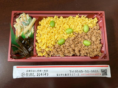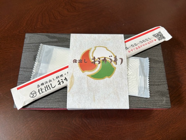 1つだけおしぼりの代わりに味噌汁のパックが付いている弁当があった。