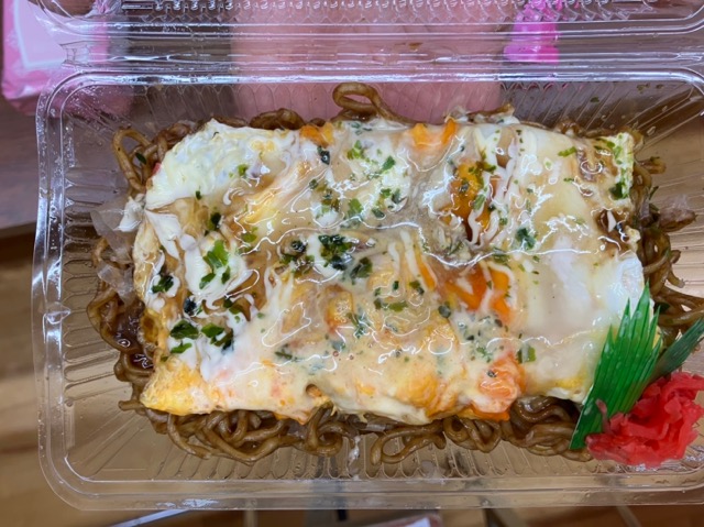 玉子が半熟でとろーり、焼きそばのあじつけもよく、少なそうに見えても大満足。リーズナブル。鰹節がよいアクセントとなっている。