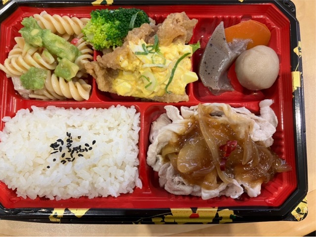 生姜焼きのように見えたおかずは、豚しゃぶの上にあんかけがかかってるやつだった。