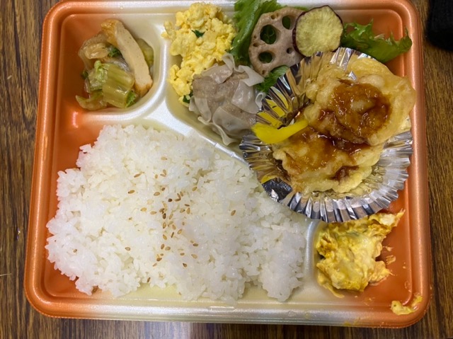 幕の内 中華 とり天黒酢と大きなシュウマイ(590円)