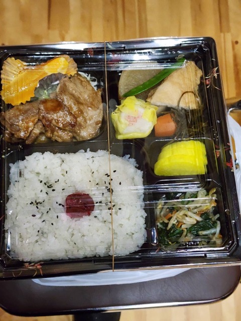 一番美味しかったのは野菜炒め。中華風の味付けが嬉しい。煮物は、純和風です。肉はBBQソース(?) 味のソテー。美味しかった。ご飯は冷めても美味しいご飯です。また食べたいなぁ。