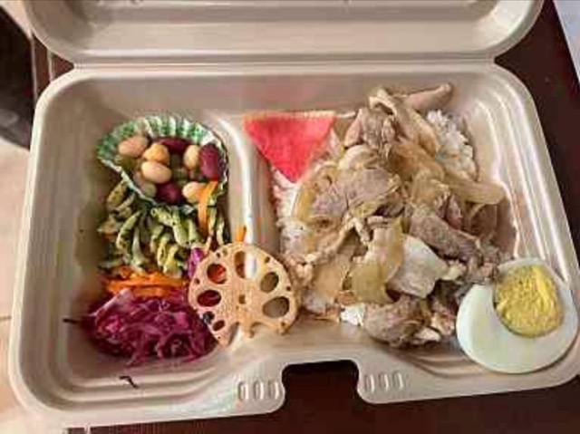 カラフルデリと定番ポークジンジャーのお弁当¥750