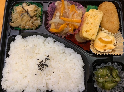 肉は豚肉のソテー、肉のフライ、豆腐ハンバーグ。魚は南蛮漬け、サーモンのマヨネーズソテー、クリームコロッケ。
