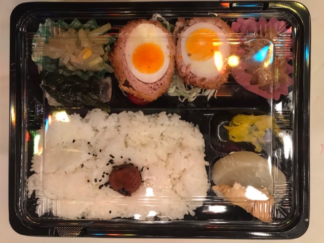 日替わり弁当は肉中心か魚中心かどちらかを選べるみたいで、おすすめされた「おまかせ」にしたら、卵が中心のものが来た。