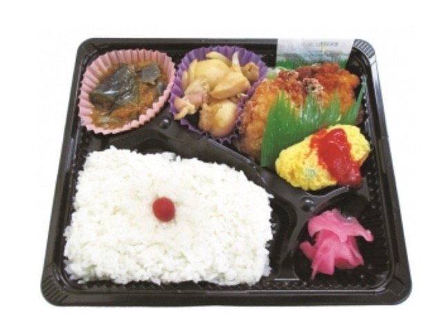 チキン南蛮は小さめの甘酢味のお肉が2枚。付属のソースはタルタルでなく、なぜか醤油。椎茸の煮物とおでん的煮物、ナス味噌、野菜入りオムレツ。量は多くないが、普通のお弁当で悪くはない。