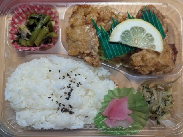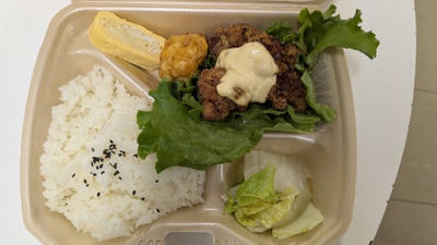 とても美味しいしヴォリュームも十分。副菜までこだわっている感じがする。唐揚げの下にしいてあるパスタもパサパサじゃなくて感動。