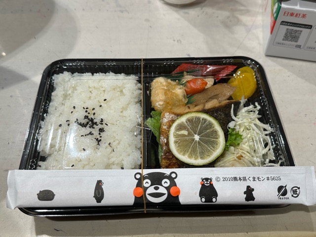 コロッケ、竜田揚げ、かき揚げ、ナスの天ぷらと揚げ物がたくさん入っているが、薄味であっさりしている。
